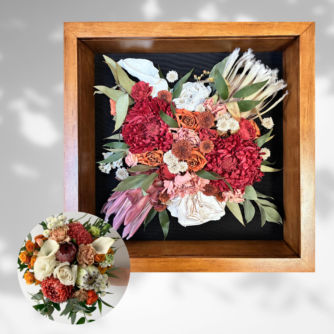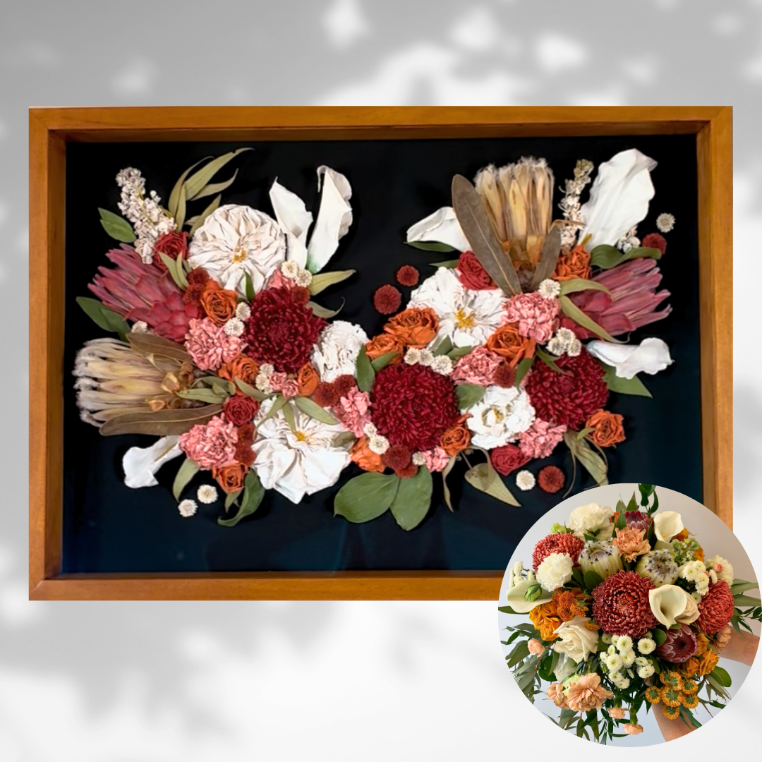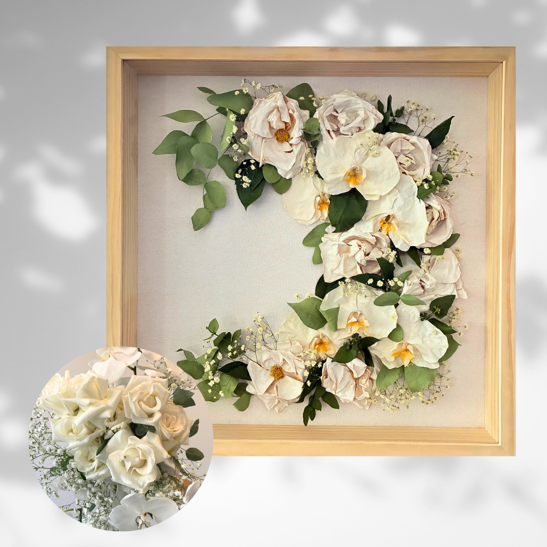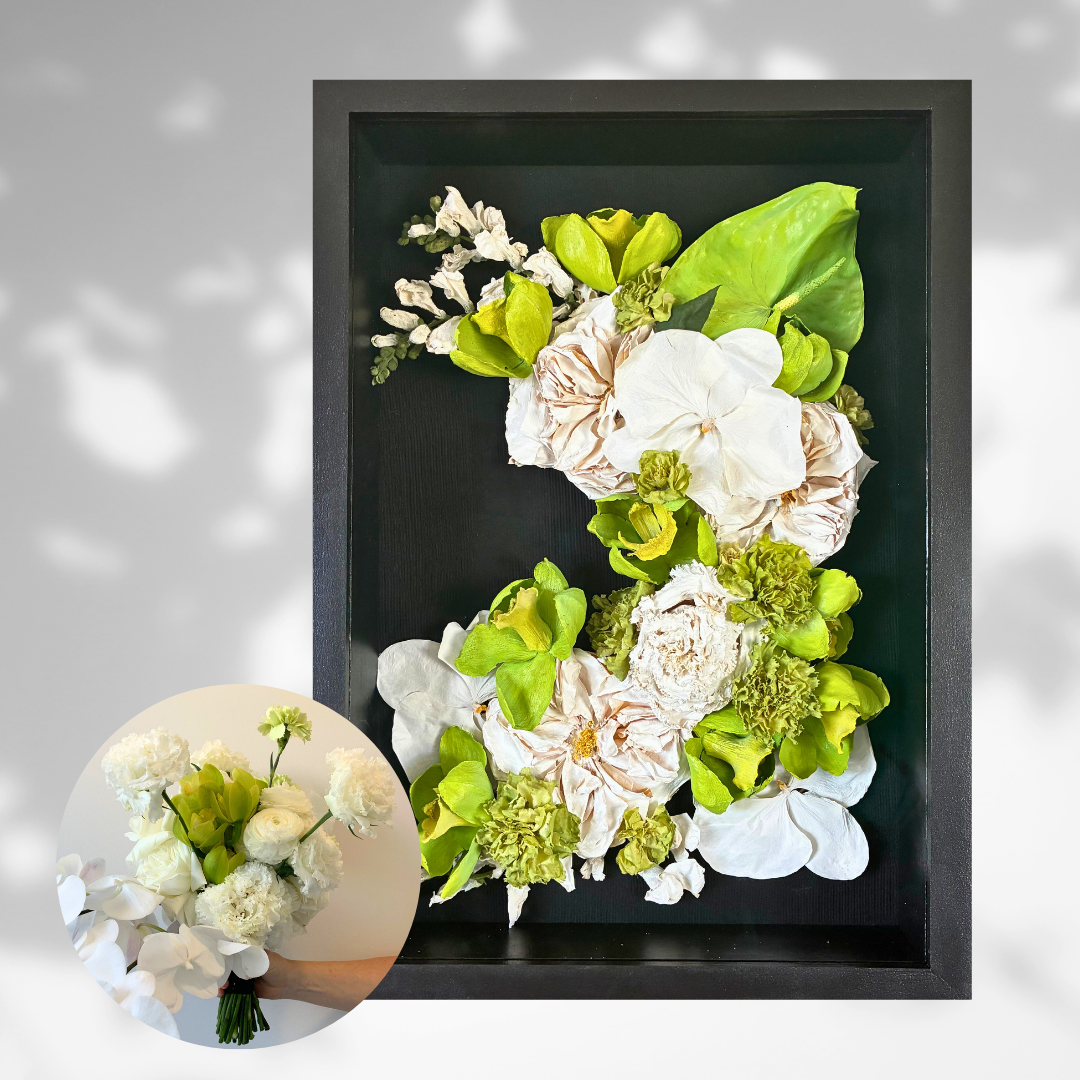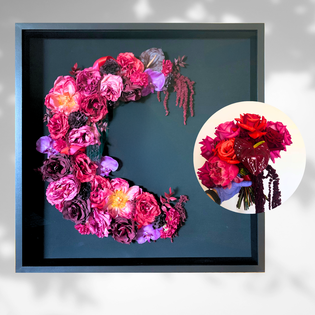 Every flower preservation piece is individually handcrafted in our home studio, allowing us to create designs that feel personal, timeless, and intentional. Our pricing below reflects our signature frame sizes, with bespoke options available for those seeking something truly unique. For custom sizing, please contact us for a tailored quote. Ready to begin? Secure your preservation date via our online booking form.