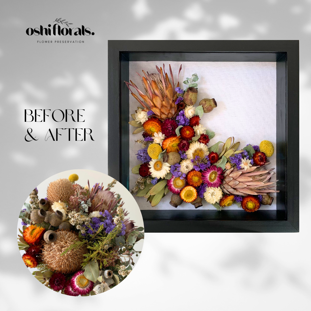 Becky made the whole process so easy from the start to the finish with regular updates. She is so incredibly talented and I could not be happier with how my flower preservation turned out. The finished product is something I’ll treasure forever. Highly recommend Oshi Florals!