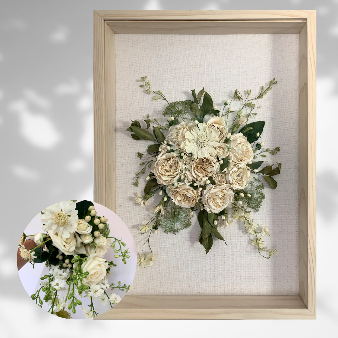 Wow – my flowers have totally exceeded my expectations and are truly a work of art. It is clear how talented and dedicated you are when you look at the level of detail and care that has been used. I am so glad I found you to preserve my bouquet. I had no idea of the work and skill this involved and really appreciated that you communicated at each stage with me and provided options for the design based on my feedback and personal style. This will truly be a piece I treasure for many years to come. Thank you so much 💕